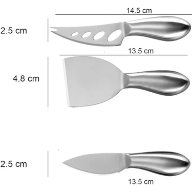 Materyal : 304 INOX paslanmaz çelik304 INOX paslanmaz çelik nedir ? Genel kullanım alanlarında ve 50 yıla dayanabilen kullanım ömrüylr, 304 kalite paslanmaz çelik, korozyon dayanımı, ısı dayanımı, mekanik özellikleri, kaynak yapılabilirliği, işlenebilirliği ve dövülebilmeye yatkınlığı konularında değerlendirilebilir.; Korozyon Dayanımı: 304 kalite paslanmaz çelik, diğer paslanmaz çeliklere oranla çok daha iyi korozyon dayanımına sahiptir.; 🧀 INOX Çelik Peynir & Tereyağı Bıçak Seti – 3’lü | Şık Sunum | Fonksiyonel Kesim | TRANSFORMACION Kitchen ProfessionalSunumda zarafet, kesimde işlevsellik arayanlar için tasarlanmış bu 3’lü INOX çelik bıçak seti, peynir ve tereyağı servislerinde hem estetik hem de pratiklik sunar.304 kalite paslanmaz çelik, gıda temasına uygun, hijyenik ve uzun ömürlüdür.; Farklı bıçak tipleri, yumuşak, sert ve sürülebilir ürünler için optimize edilmiştir.; Görseldeki lifestyle sahneler, ürünün şarap, kraker ve peynir eşliğinde nasıl şık bir sunum parçasına dönüştüğünü gösterir.; 📐 Teknik ÖzelliklerSet İçeriği: 3 adet INOX çelik bıçakBıçak: 2.5 cm genişlik / 14.5 cm uzunluk – sürülebilir ürünler içinBıçak: 4.8 cm genişlik / 13.8 cm uzunluk – yumuşak ve orta sertlikte peynirler içinBıçak: 2.5 cm genişlik / 13.5 cm uzunluk – dilimleme ve sunum içinMalzeme: 304 kalite paslanmaz çelikTemizlik: Elde veya bulaşık makinesinde yıkanabilir